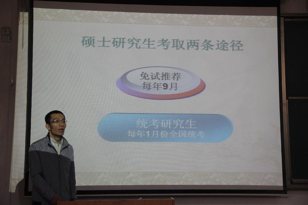 4月13日下午,学院副院长王树奇利用2012级就业指导课时间,就近几年考研形势,最新考研政策给2012级学生做了报告。王院长指导学生要根据自己的实际情况,选择就业或者考研,要准确给自己定位,找准目标,在学好当前专业课程的同时着手开始为考研或者就业做准备。据悉,4月份是学院的就业服务月,学院将组织进行一系列关于就业、考研的报告会、讲座,为学生做好就业指导和服务工作。