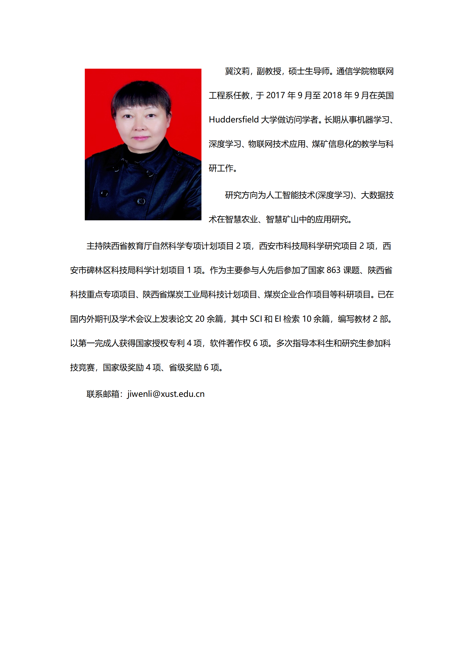 冀汶莉 副教授 硕士生导师