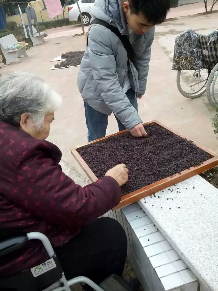 此次活动旨在在寒冷的冬天给老人们送去一份关爱与温暖。生活在敬老院的老人们由于各种原因不能有儿女陪伴身边。为了减轻他们的孤独感,给他们带来欢乐,让他们感受到关爱与温暖,我们怀着奉献之心,来到临潼区金秋老院,为老人们做一些小事,陪他们聊聊天、说说话,与老人们共度的短暂温馨快乐的时光。早上9点,我们乘坐公交车到达目的地——金秋敬老院。然后在工作人员的安排下,志愿者们礼貌地进入老人们的公寓,分组打扰老人公寓,有的擦窗户,有的整理内务,有的扫地……“人心齐,泰山移”,很快,我们就把公寓打扫得干干净净了。接下来志愿者与他们进行互动,有的陪老人聊天,有的扶老人散步,有的帮老人捶背。还有几个志愿者不嫌脏累的帮老年工作人员除杂草,就连平日里娇羞的“小公举”这时也变成了“女汉子”。看到老人们灿烂的笑容,听到老人们爽朗的笑声,志愿者们觉得再苦再累都是值得的,都是快乐的。