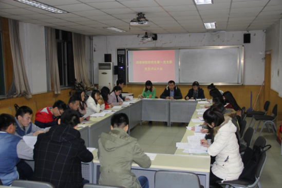 12月12日晚,研究生第一党支部召开全体党员大会组织开展党员民主评议。根据前期召开支部民主生活会的工作部署,支部书记何盼盼代表支委对支部开展“两学一做”学习教育情况进行了汇报。学生党员就自己一年来的学习工作情况进行了自评总结,并开展了全体党员民主测评。会上支部宣传委员带领大家集中学习了习近平总书记在全国高校思想政治教育工作会议上的重要讲话。