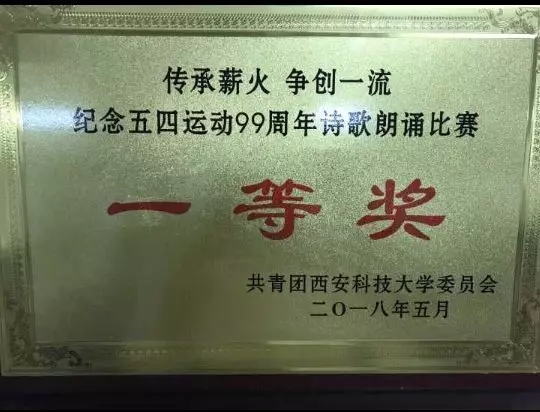 五四青年节,是为纪念1919年5月4日爆发的五四运动而设立的。它来源于中国1919年反帝爱国的“五四运动”。五四精神的核心内容为“爱国、进步、民主、科学”。为了纪念五四运动九十九周年,我们于今晚在学生第二俱乐部参加了诗歌朗诵比赛并荣获一等奖。