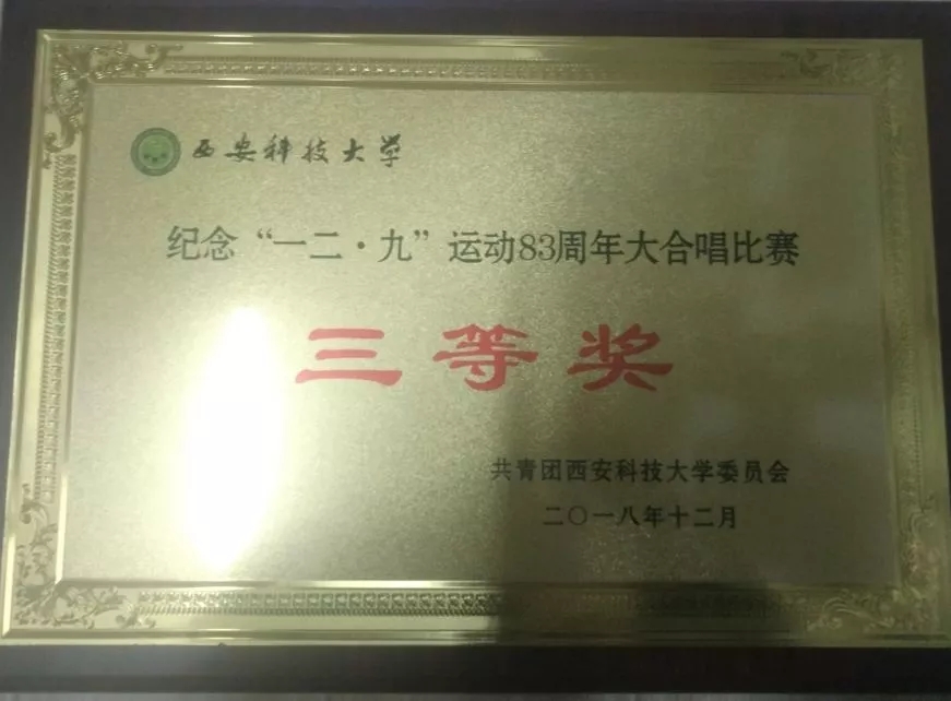 不忘初心继续前行,万水千山最美中国梦。在2018年12月7日下午19时,以“传承创新,争创一流”为主题纪念“一二.九”学生运动83周年的大合唱比赛在诸侯快讯网址临潼校区骊山校园体育馆正式举行,以纪念在祖国存亡之际挺身而出的青年们,与此同时我们取得三等奖的好成绩。