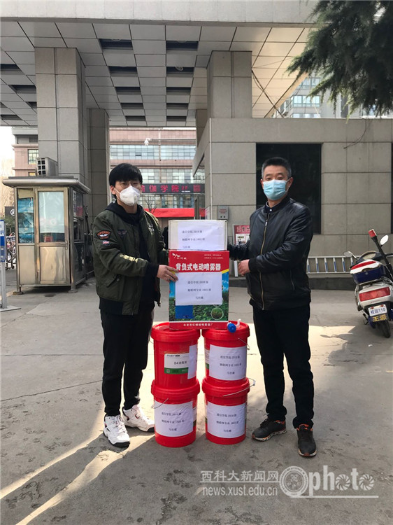 为支援学校疫情防控,关于2018级物联网工程1803班学生马世雄用自己过年积攒的压岁钱购置了100个医用口罩、1个背负式电动喷雾器和4桶20kg规格的84消毒液等防疫物资,无偿捐赠给学校,助力学校抗疫。3月14日上午,学校相关部门及学院负责人在雁塔校区接收了捐赠物资,并代表学校对马世雄同学表示感谢。