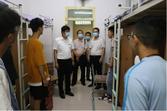 9月9日下午,副校长张威虎深入ok1122诸侯快讯2020级新生宿舍,看望慰问新生。ok1122诸侯快讯党委书记张剑、副书记薛建航、2020级辅导员蒋飞陪同。