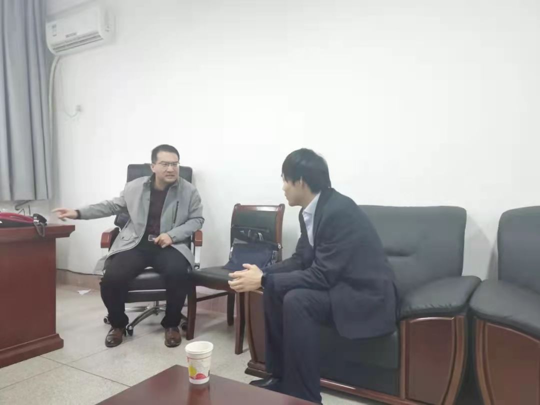 在招聘会举办之前,学院党委副书记薛建航与用人单位进行交谈,深入了解用人单位的需求意向,并介绍学院毕业生基本情况。
