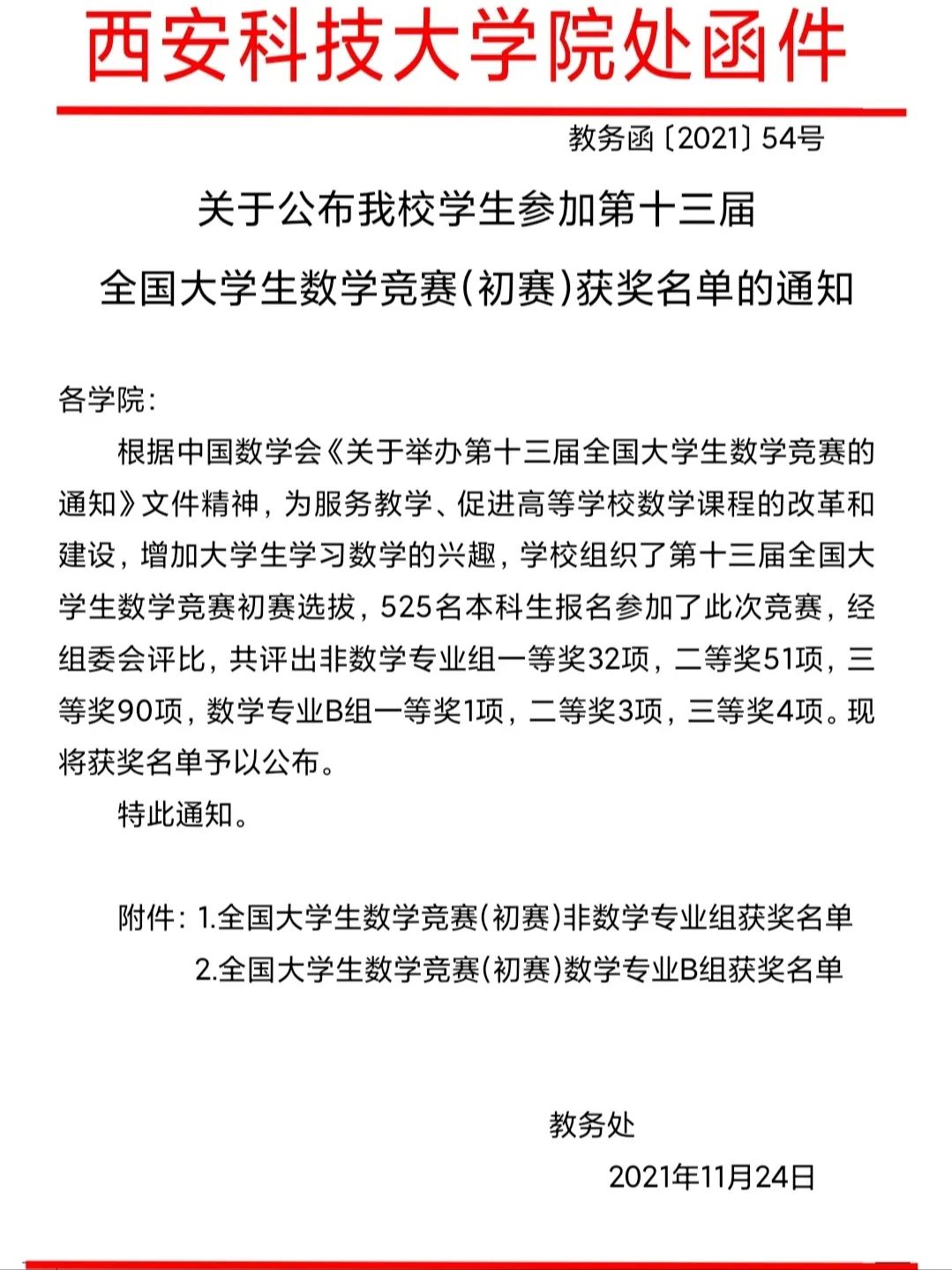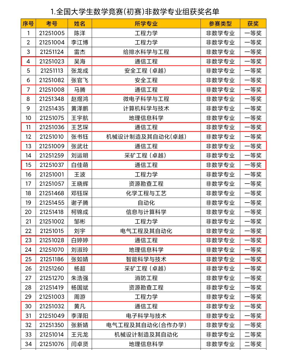 喜报丨我们学子在第13届全国大学生数学竞赛(初赛)中获奖