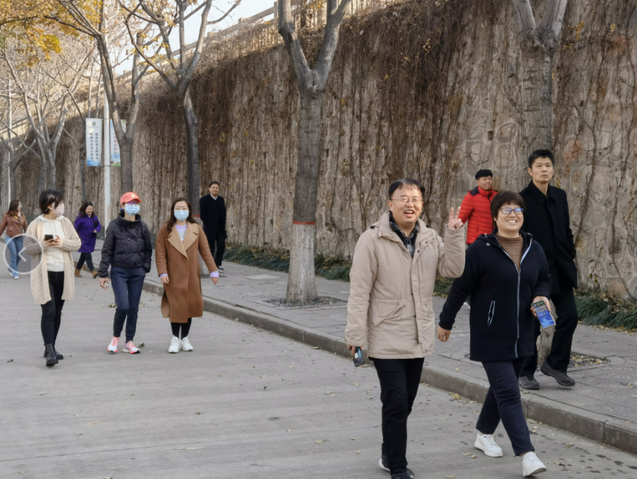 尽管冬日的寒风阵阵,但是阳光明媚,老师们精神抖擞、摩拳擦掌、跃跃欲试。在简短的启动仪式后,张剑书记的一声令下,健步走队伍在毛欣蓉主席的指引下浩浩荡荡地从16号教学楼出发了。