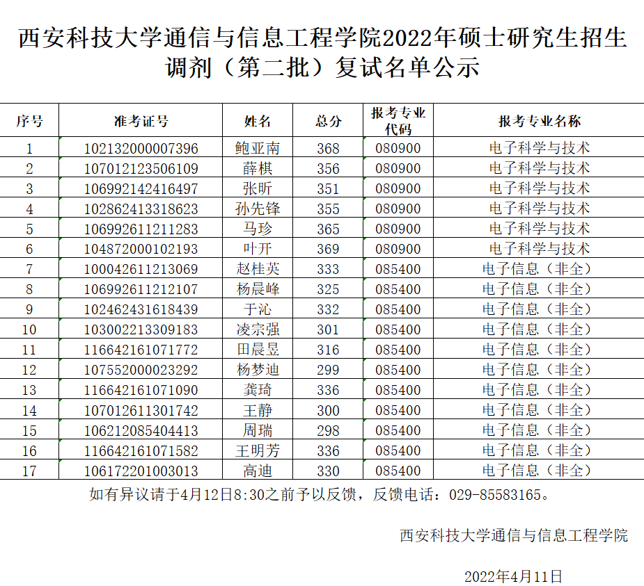 关于2022年硕士研究生招生 调剂(第二批)复试名单公示