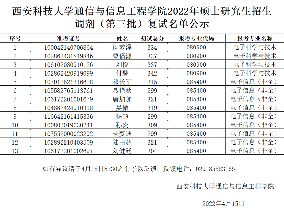 关于2022年硕士研究生招生 调剂(第三批)复试名单公示