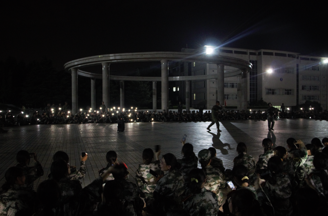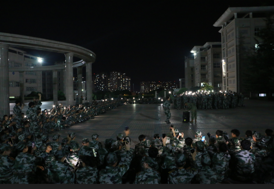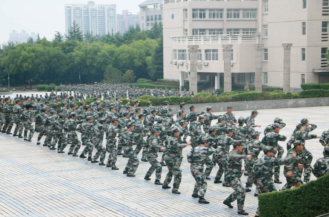 坚持不懈,每句口号回荡天际;令行禁止,每个动作如臂使手;金石可镂,每次落脚铿锵有力;人生在勤,每个同学牢记在心。