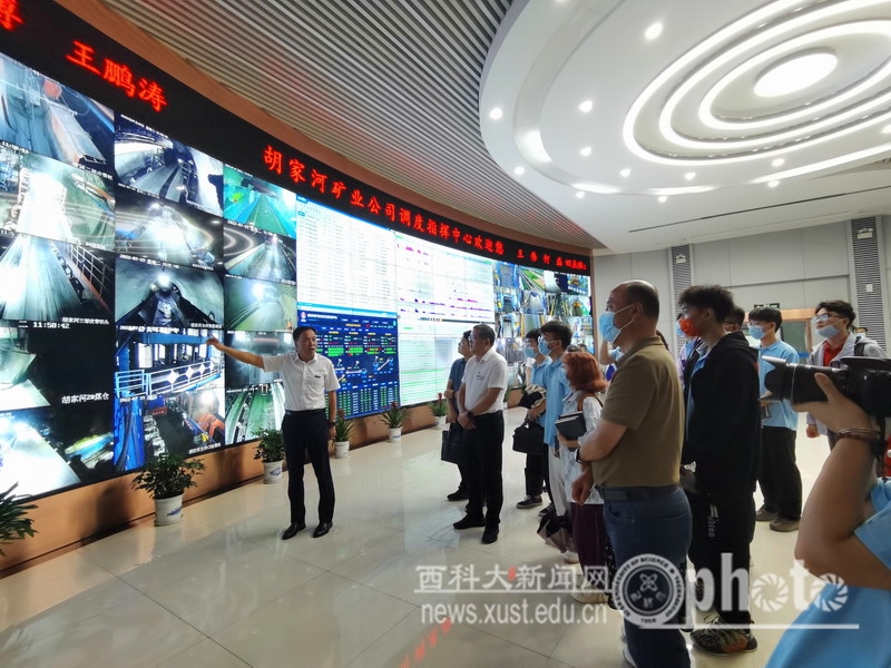 在陕西彬长胡家河矿业有限公司,陈春林带领实践团师生跟随企业领导到调度指挥中心进行实地调研学习,观看井下指挥系统具体数据以及真实井下工作场景。在亭南煤业,陈春林带领实践团师生参观了企业数字化综合管理平台,观摩了企业管理、智慧党建、安全生产的数字化管理模式。