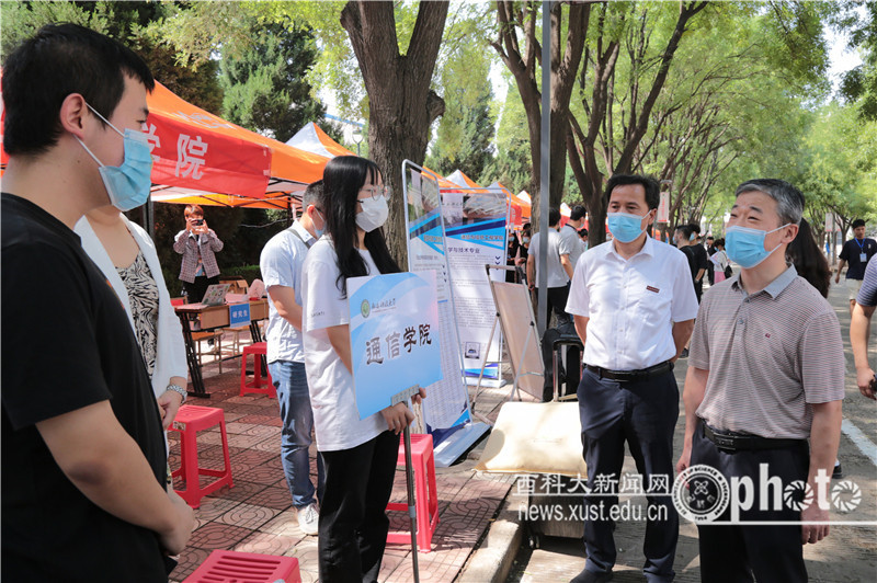 在新生接待点,蒋林详细询问了学院高年级学生返校、新生报到等情况,对工作人员和学生志愿者饱满的精神状态和热情周到的服务给予充分肯定,并与现场报到的新生进行了亲切交流,了解他们的家乡所在、录取专业,叮嘱他们要珍惜大学时光,尽快适应新生活,精进学业、增长才干,努力成为祖国的栋梁之才。