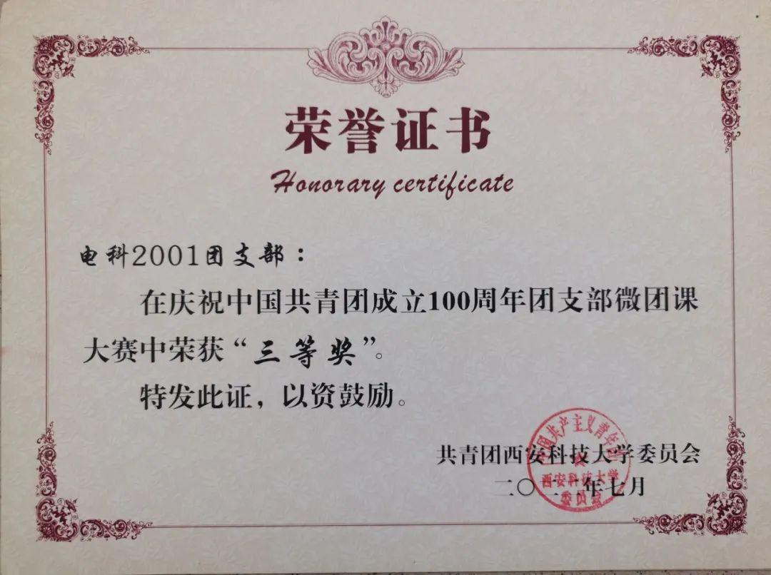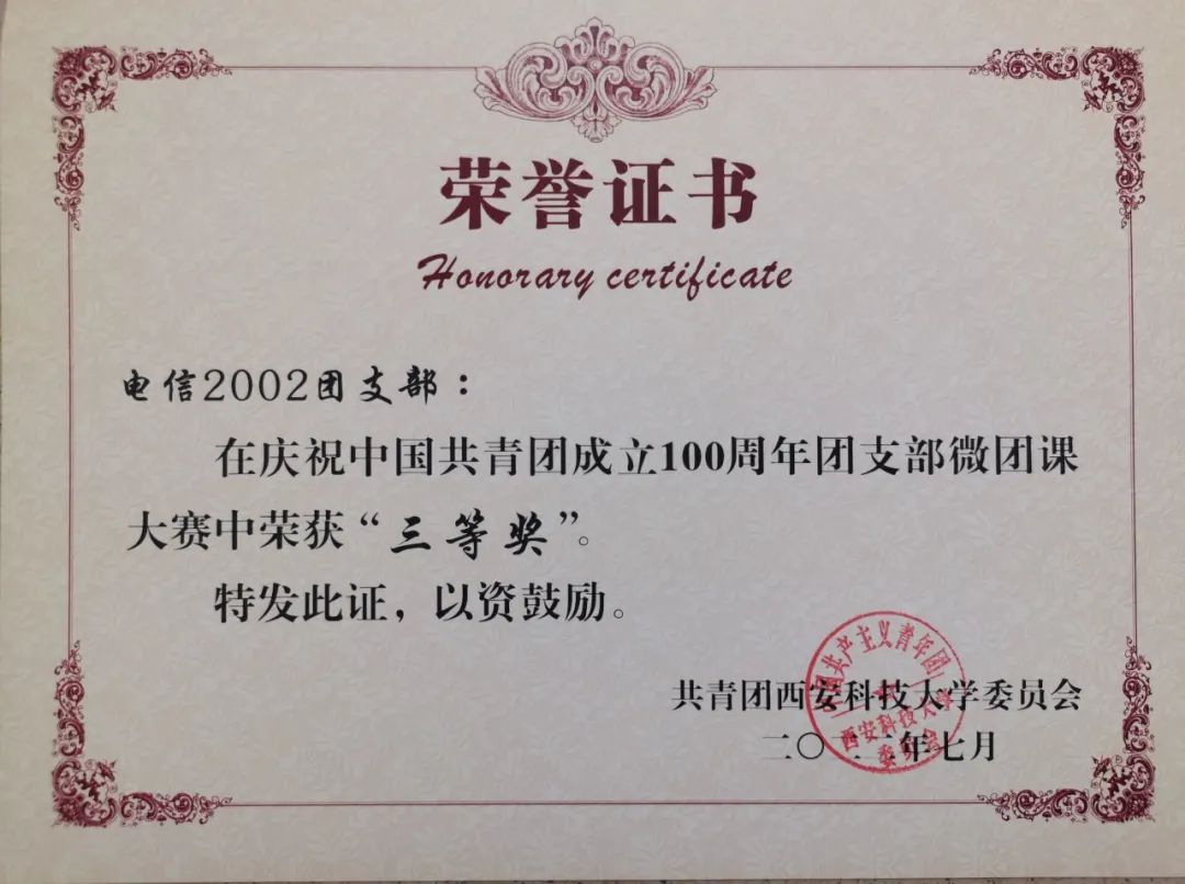 其中共6个支部在校级评选中取得优异成绩,包括二等奖一个,三等奖两个,优秀奖三个。希望获奖的集体和个人能够以此次活动为契机,继续加强对共青团工作的不断学习和研究,增强听党话、跟党走的思想和行动自觉,为实现中华民族伟大复兴的中国梦凝聚青春力量。