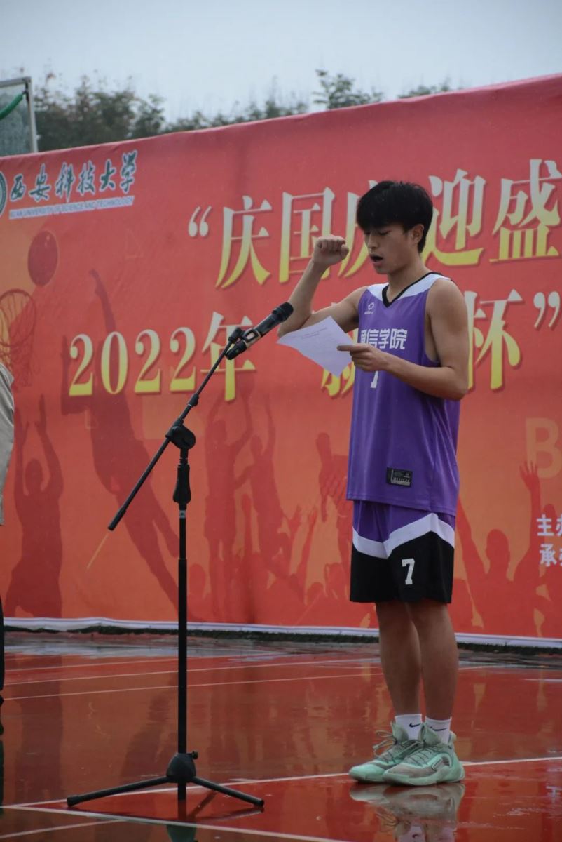 在庄严的出旗和奏唱国歌后,校党委副书记陈春林致开幕辞。他表示,学校一直以来高度重视青年体育运动工作,始终坚持德智体美劳五育并举,积极推进各项体育赛事,不断丰富校园文化,提升青年运动竞技水平。他鼓励青年大学生走下网络、走出寝室、走向运动场,展现体育“最美的样子”,并要求参赛运动员发扬体育精神,遵守比赛规则,赛出水平、赛出风格,把本届篮球赛举办成一次精彩、激烈、圆满、成功的盛会,取得体育比赛和精神文明的双丰收。最后,他希望广大学生以赛事为契机,文明精神、野蛮体魄,把身体锻炼好,把知识学好,以饱满的精神状态和昂扬的奋斗姿态迎接党的二十大胜利召开!
