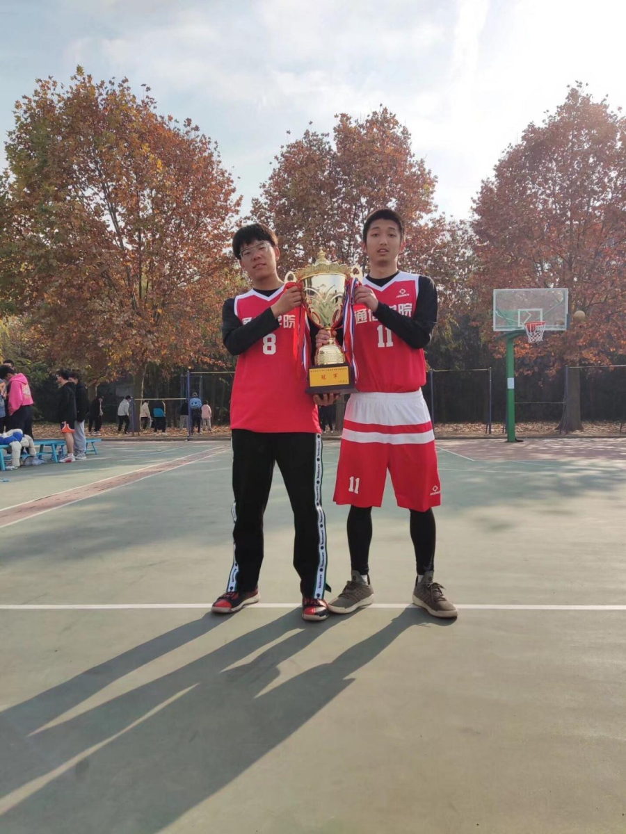 两位同学在大一刚入校时便一同参加学院篮球队的选拔,在60多名报名的新生中,他们的身体素质和技术并不出众。随着训练强度的增加,越来越多人选择退出,而他们两人选择为梦想坚持下来,从未请过一次训练假。下雨就在室内跑楼梯、天晴就在场地练体能战术,风雨无阻,最终成为院队的主力队员。在学校的“新生杯”篮球赛决赛中,两人轮流上场,依靠“一盯四联”战术,死死防住对方实力强劲、组织进攻的核心球员,最终取得“新生杯”篮球赛的冠军。