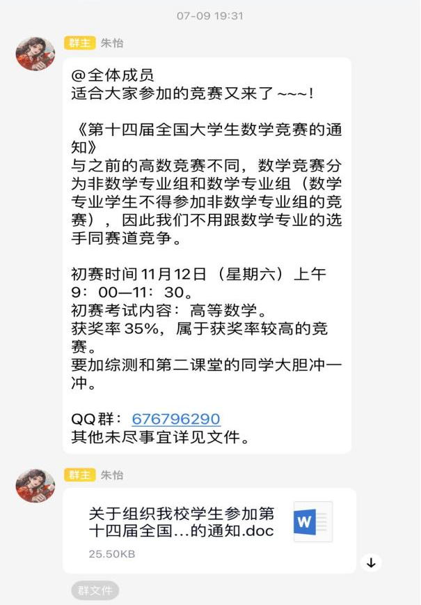 “亢乐丫,你的高数成绩那么好,高数竞赛报个名呗,给大家做个表率嘛。”