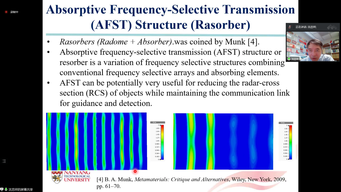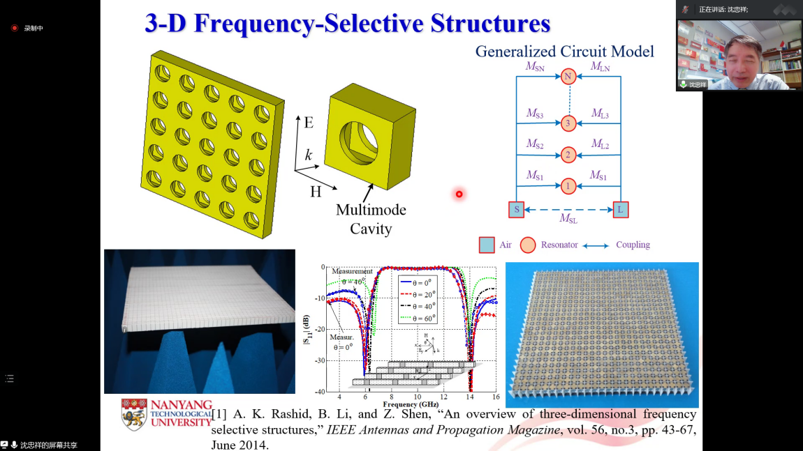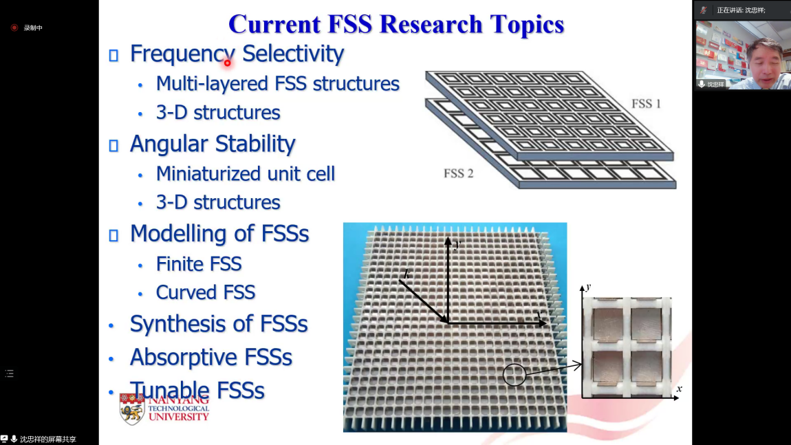 讲座中,沈教授首先简要概述了电磁选择性表面/结构(EMSS),并介绍了EMSS设计的最新发展和进展,然后对EMSS设计和分析领域的未来机遇提出建议。讲座结束后,同学们都感觉意犹未尽,收获颇多,一致认为沈教授的讲座拓宽了研究思路,开拓了研究视野,紧跟时代的步伐,让同学们的所知、所识站在技术的前沿。最后,在同学们线上热烈的掌声中,本次“胡杨林大讲堂”圆满结束。