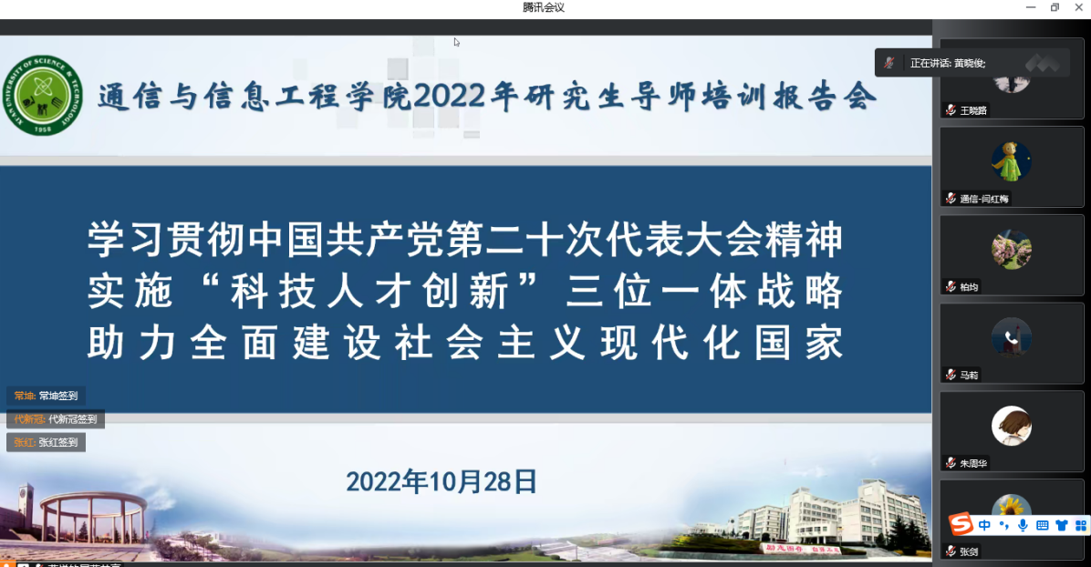 10月28日下午4点30分,关于2022年研究生导师培训系列首场讲座以线上腾讯会议的方式进行,参加本次讲座的有研究生院和学院领导及学院研究生导师80余人。此次讲座以党的二十大精神为主题,邀请马克思主义学院副院长张铭钟教授做专题报告。