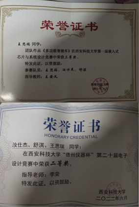 博学之,审问之,慎思之,明辨之,笃行之。她学习刻苦,踏实细致,说起她的心路历程,“在大学刚开始时还很迷茫,不知道是否要加入社团,最后我决定加入创新班尝试一下,毕竟大学与高中来比有很多的不同。在刚开始的几周中一直尽自己最大的努力完成布置的任务,我十分害怕因为自己不努力而与别人拉开差距,渐渐的,大半个学期过去了,创新班中的人数也越来越少,从刚开始的一百多人到第一学期完也就剩下了几十人。在第一学期还没开始参加比赛,只有自己一个人在学习,但是从第二学期开始参加比赛之后我认识了非常好的队友,记得在参加比赛时我们一起呆在实验室,一起熬夜,一起完成一个作品,最后一起进行比赛的答辩,有的时候,不免会想起大一刚开始时的犹豫,不禁觉得当时做了十分正确的决定,感谢自己。”