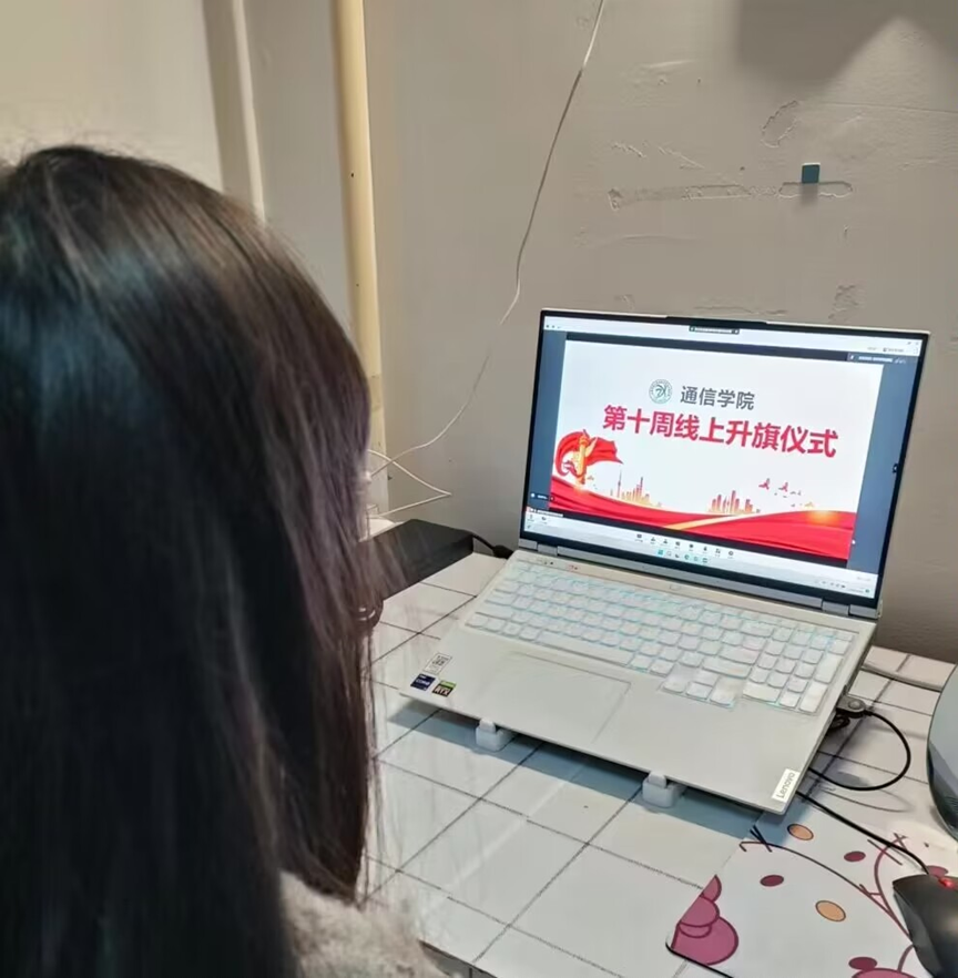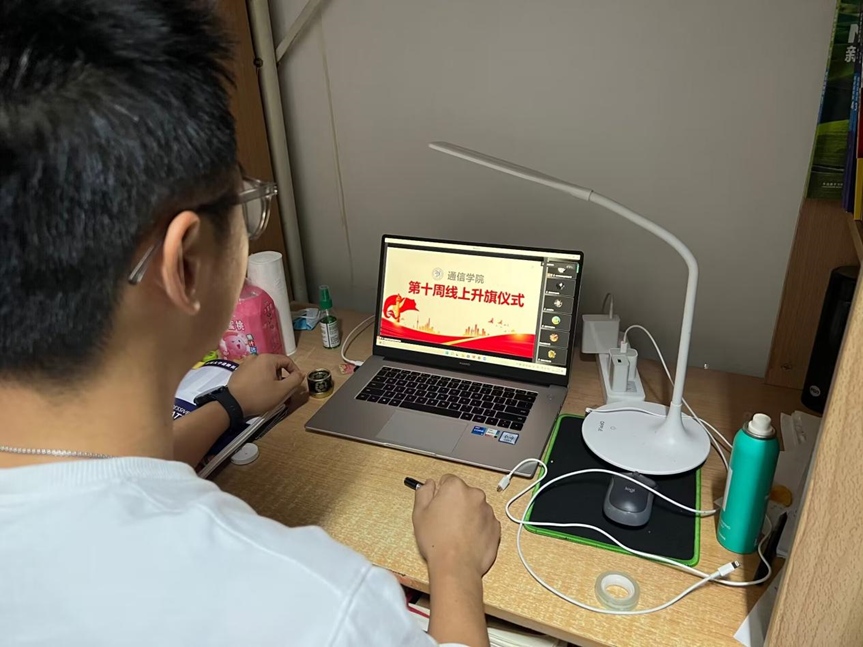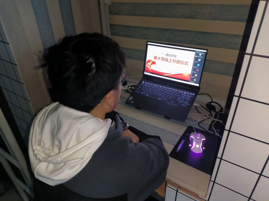 雄壮的国歌声响起。本次线上升旗,虽然没有英姿飒爽的国旗护卫队与迎风飘扬的五星红旗,但所有参与者仍心潮澎湃,注意力高度集中。