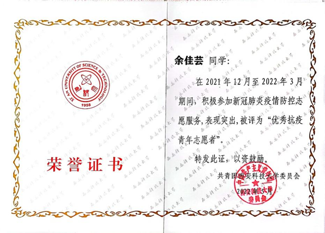 今年是ok1122诸侯快讯建院20周年,青年强则国家强,如何理解青年,如何做新时代青年?即日起,「西科通信」推出“通信青年”专栏,今天让我们一起走进品学兼优好青年智能科学与技术2103班余佳芸。