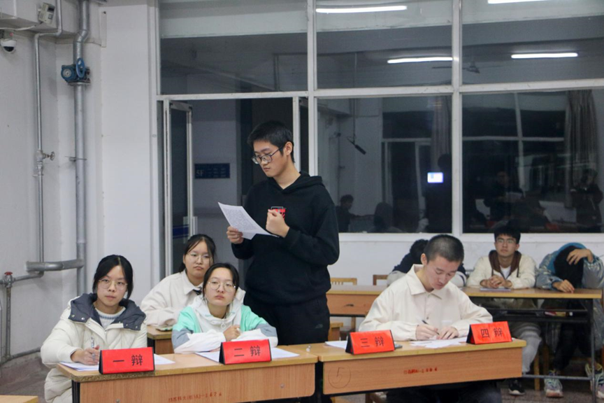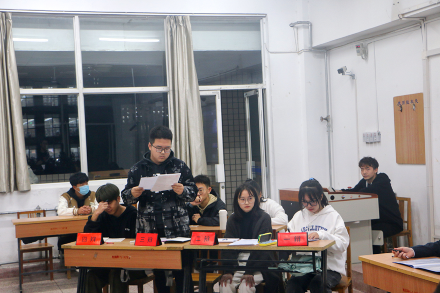 为庆祝党的二十大胜利召开,引领全院学生以昂扬的姿态发扬党的精神,树立正确价值观和远大理想,我们举办了“新生杯”辩论赛。经过初赛和复赛的激烈角逐,辩论赛决赛于11月11日晚七点在三教503如约而至。我们团委书记张剑老师作为特邀嘉宾观摩本场比赛,同时邀请校辩论队成员担任本场比赛的评委。