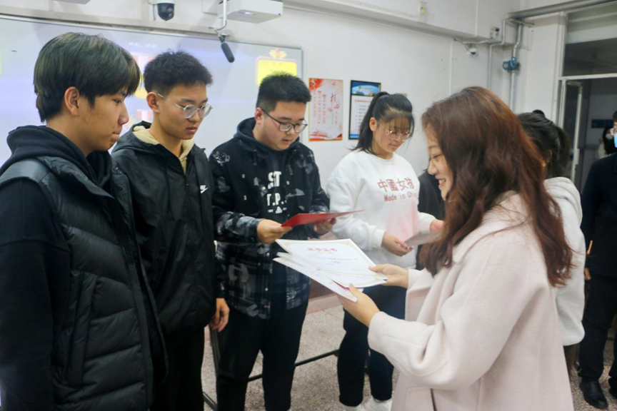 团委书记张剑老师以及评委分别为取得成绩的队伍和同学颁发证书。