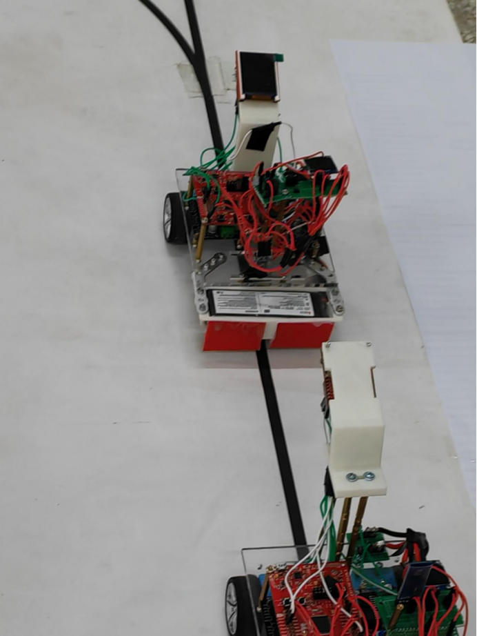 第二天中午,新置电机一到我们就开始搭建小车。下午,全新的两辆参赛小车搭建完成。简单上电测试,一切模块可以正常工作。接下来就是程序大关——题目一共四个小题,赛道本身有内外圈之分,题目每一小题,都是有内外圈行驶路线规定,摄像头的第一大难关就是实现岔路口的判断,在小车经过无数次在岔路口飘飞之后,终于实现。相对而言前两小题较为简单,可是第三小题难度就急速上升:主从车同时保持间距20cm先跑一圈。第二圈开始,主车在岔路口的时候需要走外圈,从车走内圈,完成超车,第三圈主车需要同第二圈从车的路线完成反超,并行驶完第三圈后两车同时停止,间距20cm。此题对于摄像头在一定时间内的判断提出了极大的要求。除此因为要在特定的时间需要超车,对于控制车辆也是具有较强的要求,此题不仅是对于视觉程序,更对车辆控制及程序的稳定提出了极大的要求,需要写出满足需求的程序无疑难度巨增。其中视觉程序的算法更是尤为复杂。我们泡在程序调试,好在小车本身强度较高,硬件搭建几乎没有大修改,也没有发生烧坏模块的情况,相对的增加了调试程序时间。