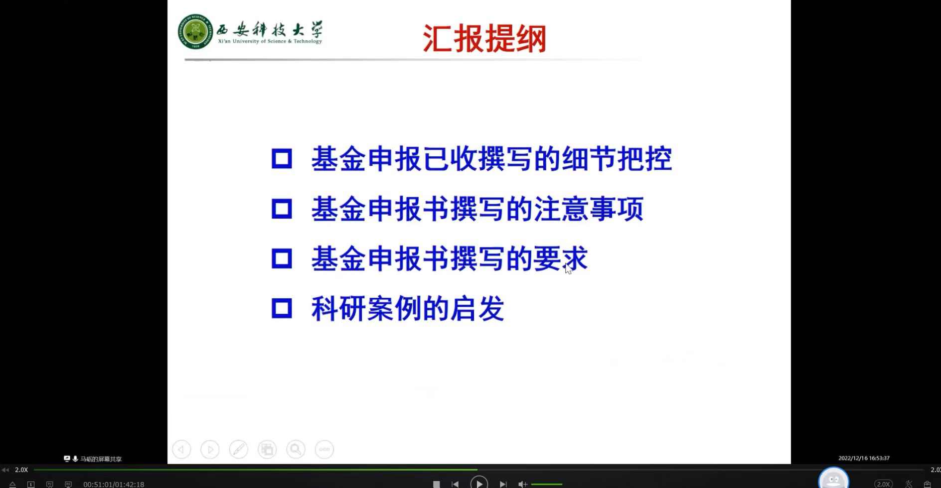会议邀请安全学院副院长马砺教授做基金申请辅导报告,马砺教授结合自身2022年申报的基金项目介绍了基金申报书的撰写技巧,分别从撰写的细节把控、撰写的注意事项、撰写的要求和科研案例的启发等方面分享了如何完成一份高质量基金申报书的经验。