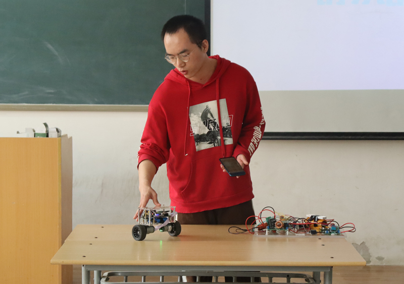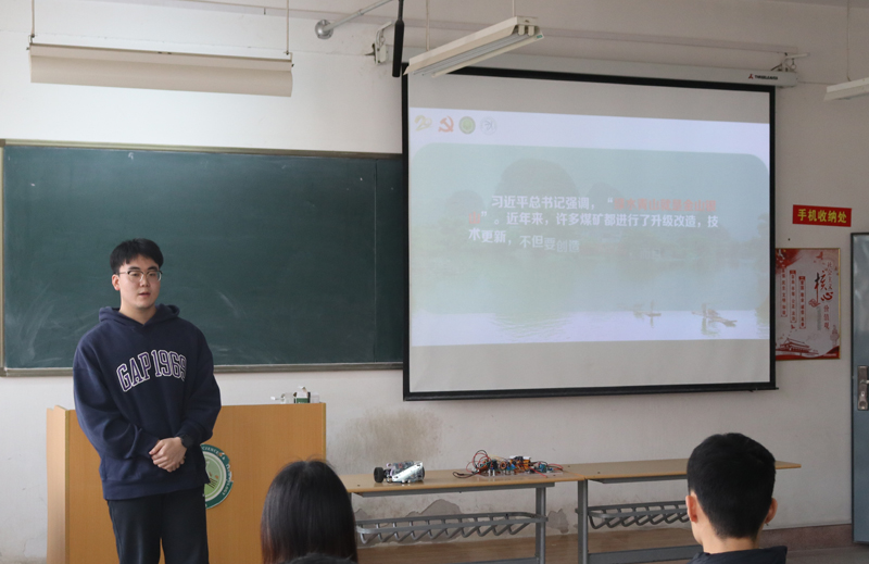 主题班会上,在全国信息技术创新应用大赛等多项竞赛中获奖的舒淇同学,演示了其电赛获奖作品——《多功能平衡小车的功能》,结合自己参加科创竞赛的经历鼓励大家积极创新、勇于尝试;社会实践活动积极分子张俊涛结合深入智能化现代化煤矿实践的经历和体会,表达了立志为祖国能源安全事业添砖加瓦的美好愿望;担任校国旗护卫队右护的张馨怡分享了自己与国旗的故事,展现了热烈真挚的家国情怀和激扬青春奉献社会的坚定决心。随后,每一位同学都在一张明信片上写下了未来的目标,约定好毕业前一起打开。辅导员刘悦表示,此次班会开得及时且有意义,相信一定在学习学业、科技竞赛、职业规划等方面对同学们有所启发,希望大家继续以党的二十大精神为指引,将自身发展融入到祖国的发展中去,不负青春,不负韶华。