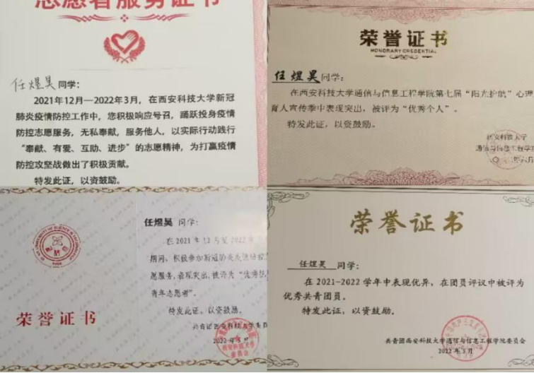 翻过一座山,你就高过一座山。从刚开始接触班级工作时的手忙脚乱,到现在的有条不紊,这一路上我经历了很多。我的工作顺利进行、能力得到提升,得益于辅导员刘悦老师的悉心指导、家人的关心鼓励、同学们的支持陪伴。在此期间,我很荣幸获得了“优秀学生干部”、“优秀共青团员”、“优秀抗疫志愿青年”等荣誉称号。并且在其他班委和全体同学的配合下,电子信息工程2103班被评为“五星团支部”、“优秀团支部”,多间宿舍被评为“优秀学生宿舍”,班级同学获得“羽毛球、乒乓球团体第一名”的好成绩。