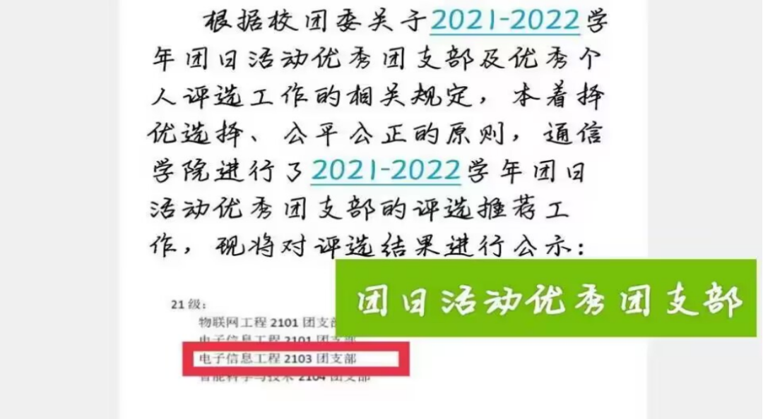 从那之后,每次开展团日活动前,我都会按照同学们最近反馈的热点问题开展主题鲜明的团日活动。如“消防与宿舍安全”、“大学生心理健康”、“防诈骗,莫大意”等等。紧扣班级实际情况和同学们的心理状态。再进行策划与任务分工,大家有措施有目的地干好自己的任务。最终在2021-2022年度优秀团支部评选中获得“团日活动优秀”的荣誉称号。