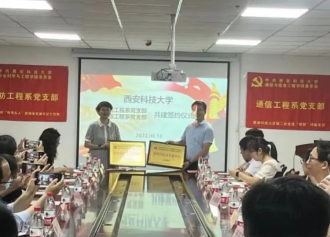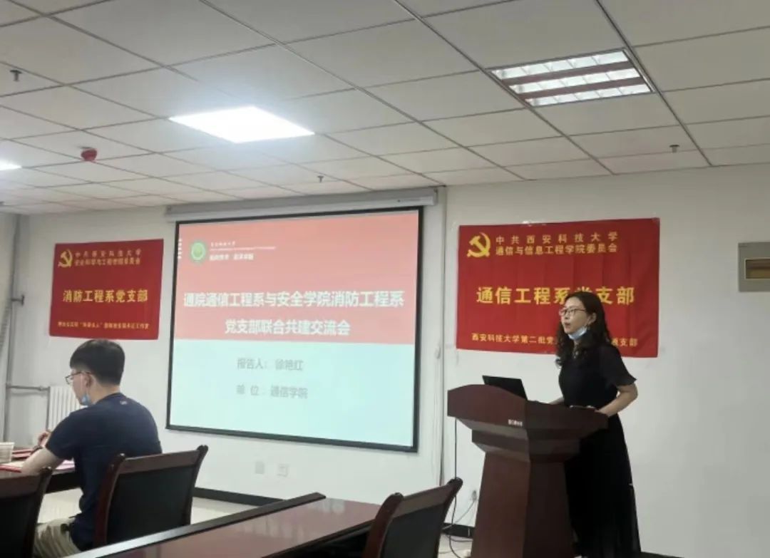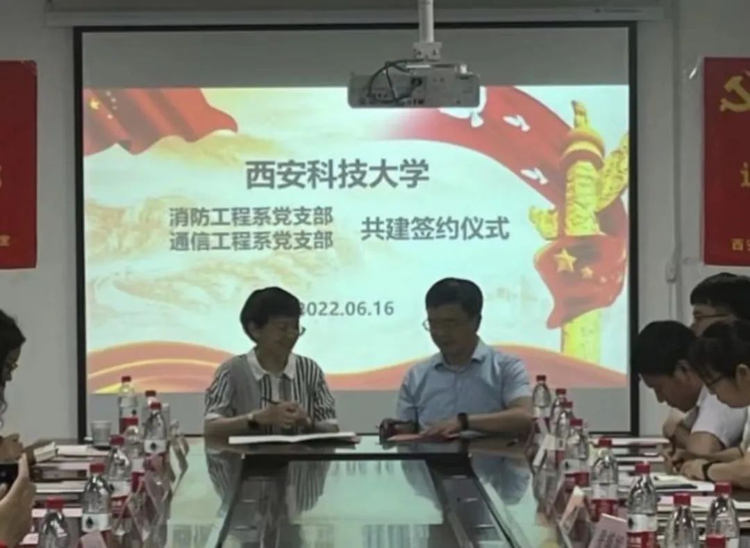 消防工程系党支部书记马砺和通信工程系党支部书记毛昕蓉签订党建共建协议,互授共建牌匾。马砺和毛昕蓉分别结合各自支部发展实际,从理论学习、师德师风、教学科研、社会服务、文化传承等方面进行了介绍交流。消防工程系党支部于志金、通信工程系党支部徐艳红两位党员分别结合自身学习工作进行专题交流分享。通信工程系李白萍教授对青年教师的教学科研能力提出了期望,希望双方以共建为新的起点,进一步加强党建交流与合作,夯实支部的战斗堡垒作用、发挥党员的先锋模范作用,同频共振、互联互通、共建共享。马砺表示,消防工程系党支部与通信工程系党支部将深化“资源共享、优势互补、互相促进、共同提高”的党建结对工作机制,进一步发挥支部特色和优势,加强教学、科研等方面的深度融合,促进基层党组织建设高质量发展,为学校的发展贡献力量。