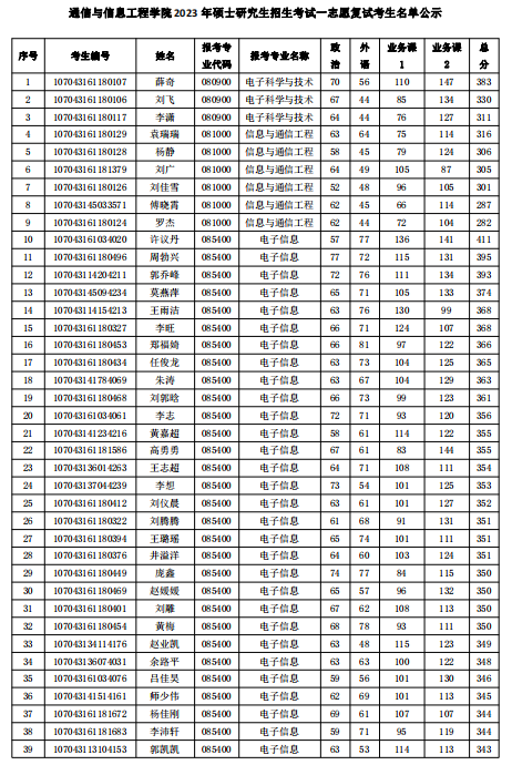 关于2023年硕士研究生招生考试一志愿复试考生名单公示