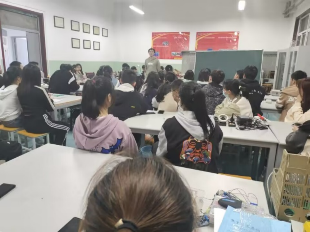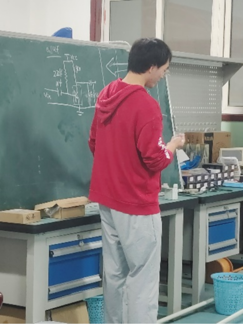 一年的时光转瞬即逝,暑假我收到了当时创新班班长的消息,他推荐我接任创新班班长的一职。在学长的鼓励与支持下,我决定要接下这份工作,并尽自己的全力做得更好。暑假期间,新生还未步入学校,我就开始准备创新班的招新海报;新生刚进入学校后,我带上我们制作的小车、无人机、数控电源去招新,用我们的作品吸引更多对创新科技感兴趣的学弟学妹们加入;为了帮创新班的学弟学妹们更快上手,我制定了符合新生成长的学习计划,从焊接与电路开始,从基础开始一点一点给学弟学妹讲解电路、模电知识;除此之外还分享自己的比赛经验,鼓励学弟学妹们积极参赛、勇于尝试;临近期末考试,将自己大一整理的笔记与考题分享给大家,帮助因考试焦虑的学弟学妹更好地完成复习任务。