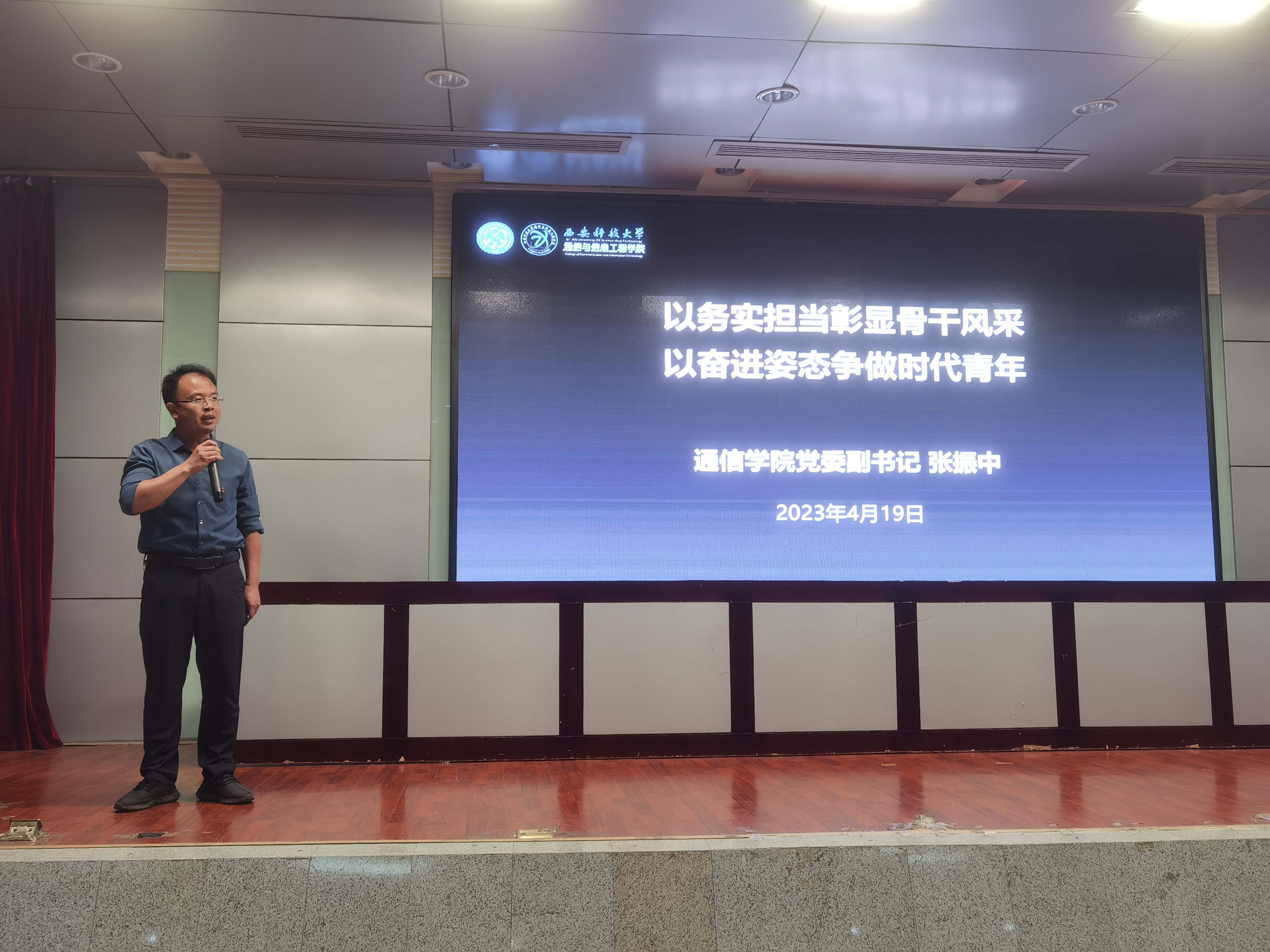 张振中最后进行活动总结并为团学干部作题为《以务实担当彰显骨干风采以奋进姿态争做时代青年》的专题培训,他从学生干部素质、能力、工作方法、角色定位等方面对大家提出新目标、新要求,希望学院全体团学干部能够提高学习本领和实践能力,培养服务意识和责任意识,妥善处理学习与工作的关系,并勉励大家要以表彰为契机、为起点,不断进行个人素养的完善和提高,努力成为奋进通信青年的典范。他强调,学院团学干部要积极开展学习贯彻习近平新时代中国特色社会主义思想主题教育,把学思想、强党性、重实践、建新功抓在实处,将主题教育和团学工作相结合,从而高质量落实“规定动作”,高标准谋划“自选动作”,推动主题教育在青年学生中入脑入心,真正聚焦建功创业,为学院发展建设贡献力量。