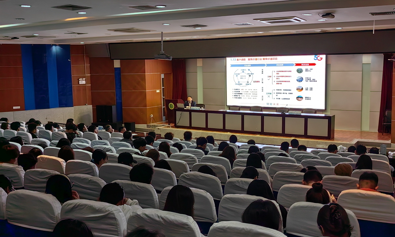 报告中,刘旭对移动通信技术发展及演变、5G网络建设与规划、5G网络应用场景、应用具体案例和项目方案进行了系统的介绍。他指出,随着国家5G新基建战略的深入,行业数字化转型升级进入高潮。市场对“融合定制”的5G定制网服务需求持续提升,未来电子通信行业将以5G等信息通信技术和数据要素为驱动力,推动经济社会各领域向数字化、网络化、智能化转型,为人们提供更便捷、舒适的生活环境。他勉励同学们紧跟时代步伐,将个人努力奋斗的“小目标”融入民族复兴的“大蓝图”,立足学科专业、面向行业,树立远大理想,增强自主学习意识,做好人生规划,珍惜在校学习时间,努力提升自身专业知识水平,积极参加各类科技创新创业活动,不断提高个人综合能力,为今后破解行业“卡脖子”难题、实现人生价值打下坚实基础。