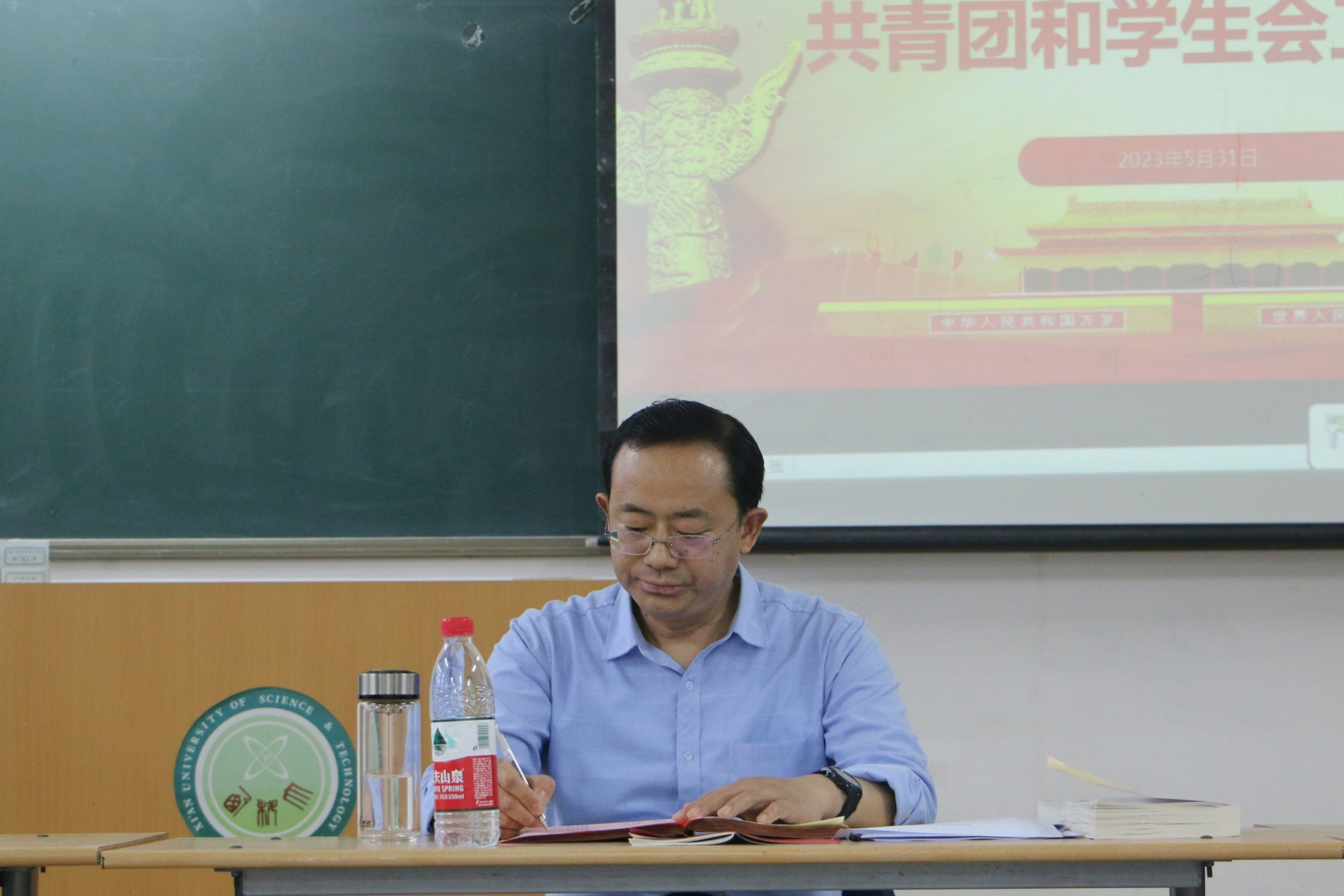 学院党委书记张剑进行总结讲话,对学院共青团、学生会工作给予了充分肯定,同时对团学干部和学院团学工作提出了期许和要求。他指出,共青团始终要践行坚定不移跟党走、为党和人民奋斗的初心使命,切实履行党的忠实助手和可靠后备军的重要职责。团学干部要珍惜工作经历,注重个人能力的提升,平衡好学习与工作;要明确共青团的定位,坚守初心使命,在特殊时期勇当先锋、奋勇向前;要强化理论学习,补足精神之钙,深入学习贯彻习近平新时代中国特色社会主义思想,从党赋予共青团的政治任务中感受光荣使命。