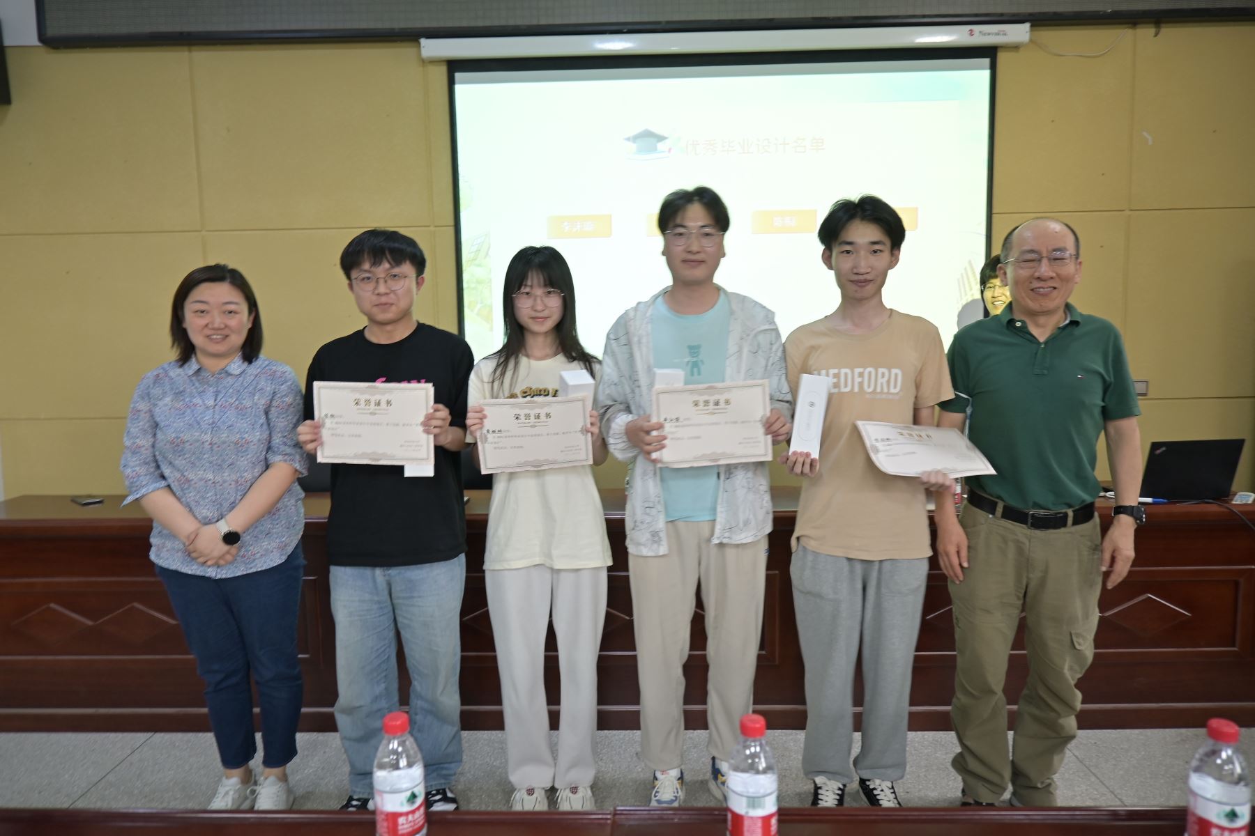 韩晓冰教授为李沫璇、陈桐、辛疆博和薛娅琳等4名同学颁发了优秀毕业设计的荣誉证书。