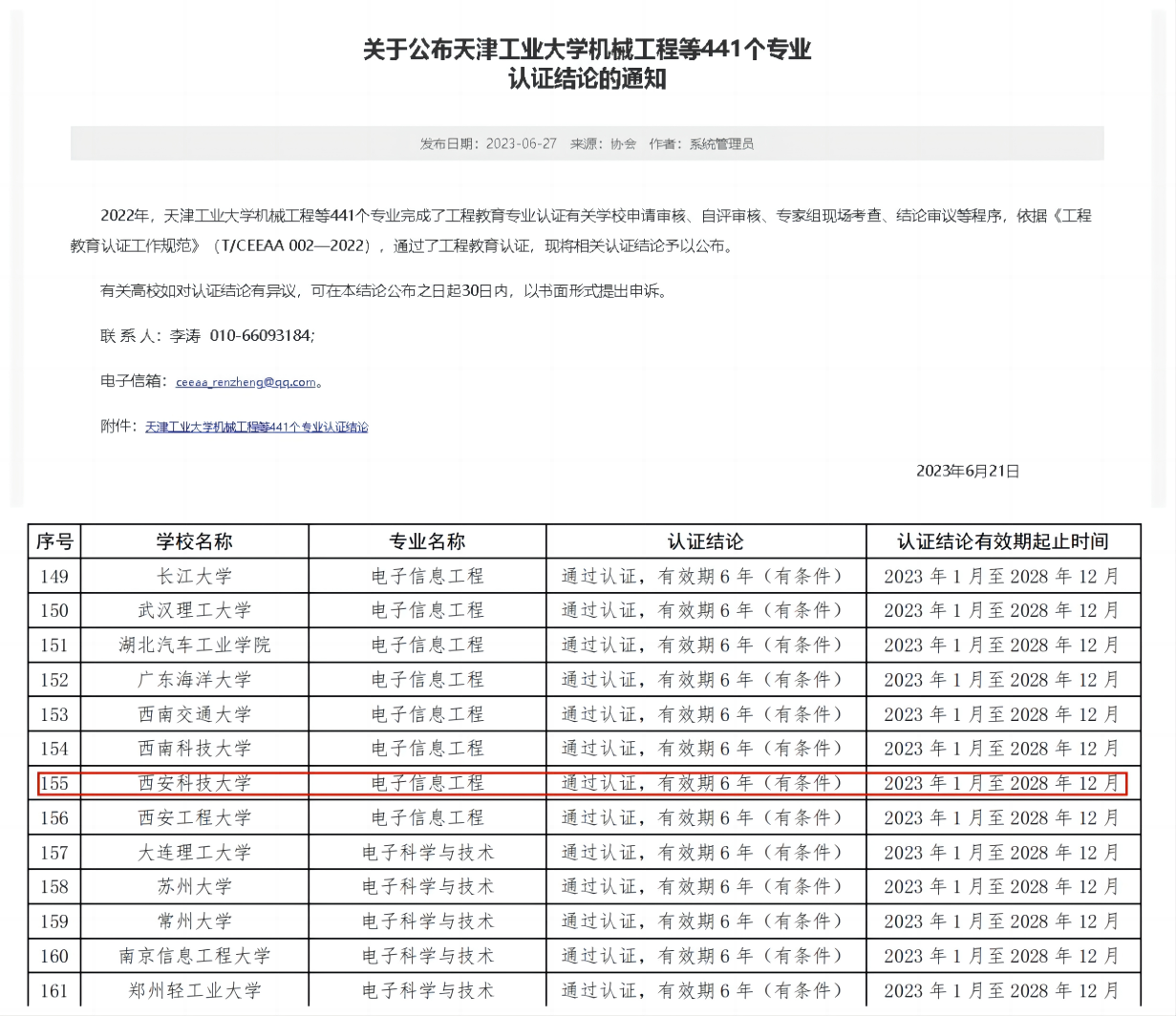 近日,中国工程教育专业认证协会分别公布了2022年通过工程教育专业认证的专业认证结论和2022年工程教育专业认证中期审核结论,全国441个专业通过工程教育认证、398个专业通过认证中期审核,ok1122诸侯快讯电子信息工程专业通过工程教育认证,认证有效期6年(2023年至2028年)。