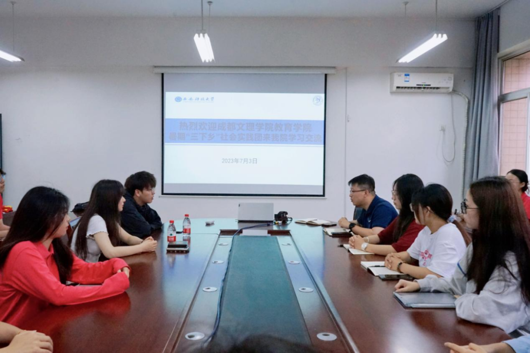 7月3日下午,成都文理学院教育学院“翻阅百年党史·赓续红色血脉”党史学习教育队一行26人来我们进行学习交流。成都文理学院教育学院分团委书记杨一康、辅导员党晨曦,我们学工办主任、团委书记张剑,辅导员朱赵文博,团学干部代表参加了交流会。