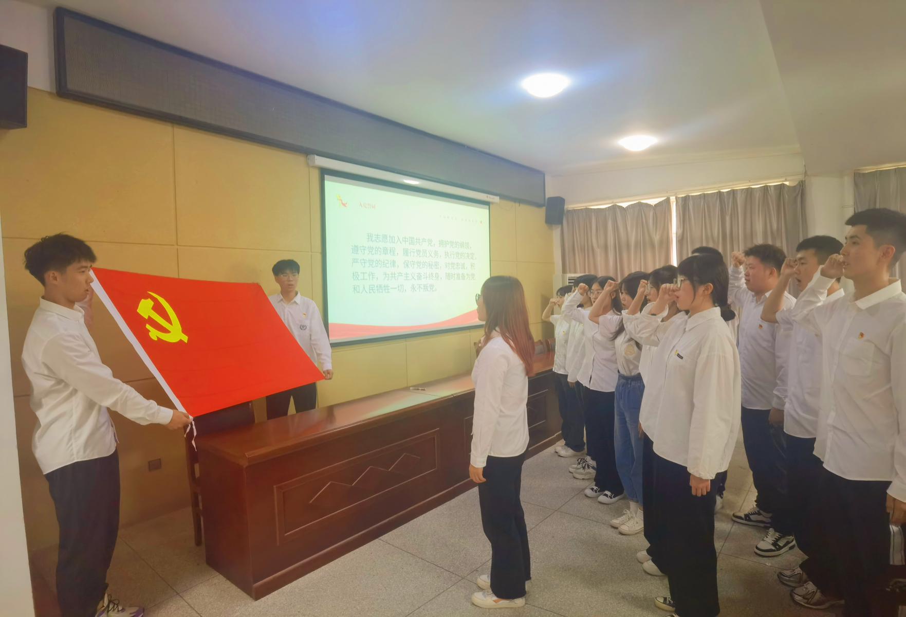 全体新发展党员胸前佩戴党徽,在党旗前列队站立,面向党旗庄严宣誓。誓言铿锵有力、掷地有声,充分表达了新党员们坚定不移听党话、跟党走,永葆初心、传承使命的信念和决心。
