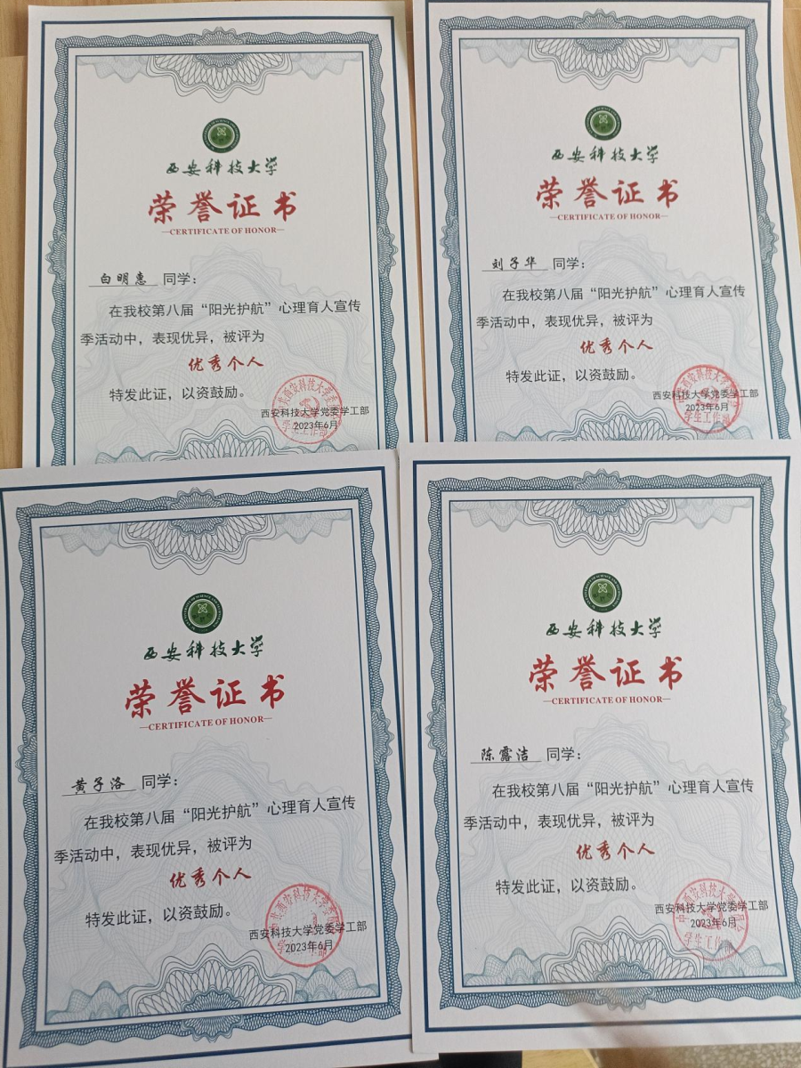 7月10下午,ok1122诸侯快讯第八届“阳光护航”心理育人宣传季颁奖典礼在临潼校区骊山校园三号教学楼207举行,由心理部的同学为获奖学生颁奖。随着本次颁奖典礼的举办,ok1122诸侯快讯第八届“阳光护航”心理育人宣传季系列活动圆满落幕。