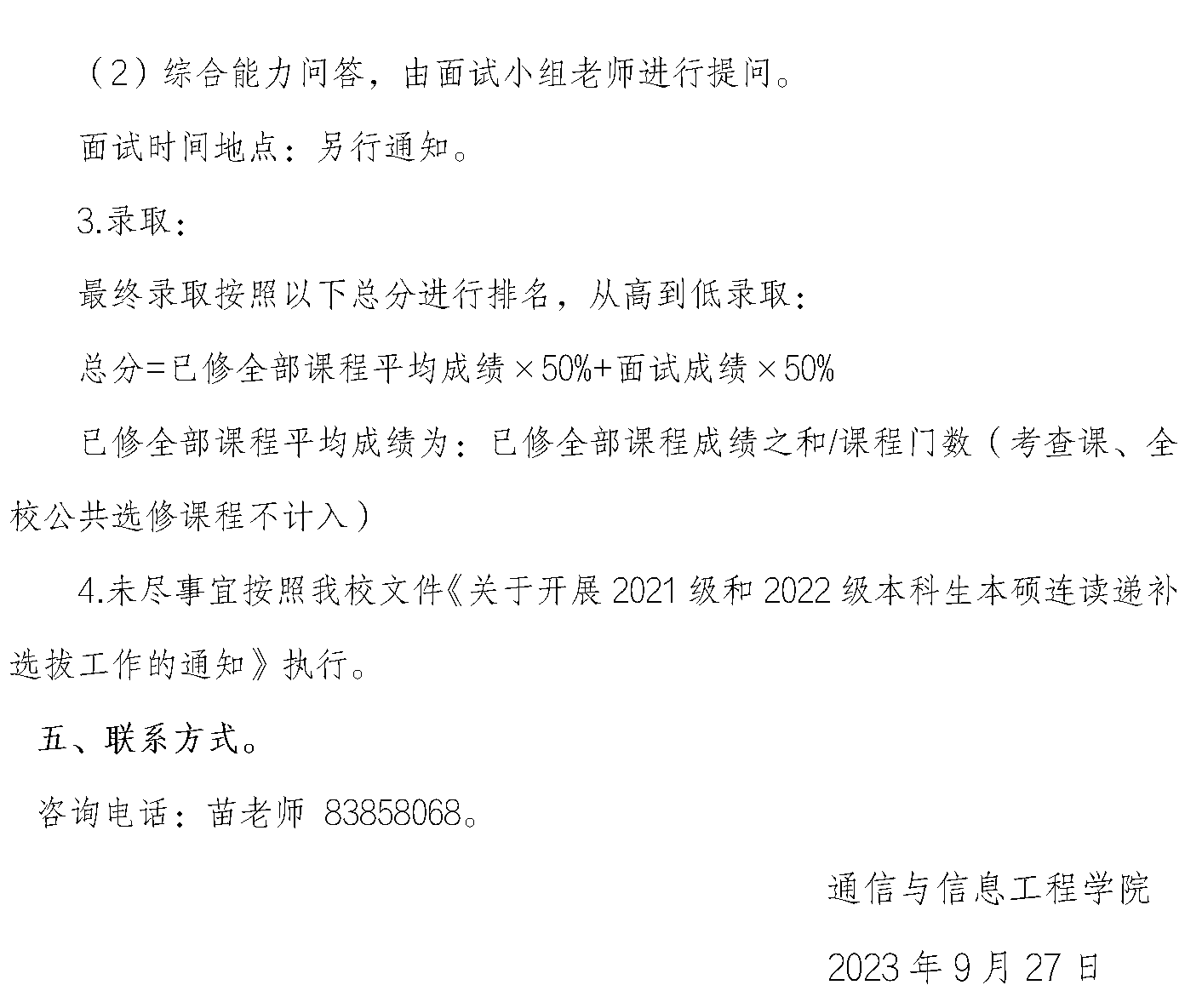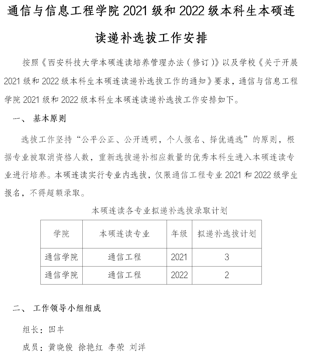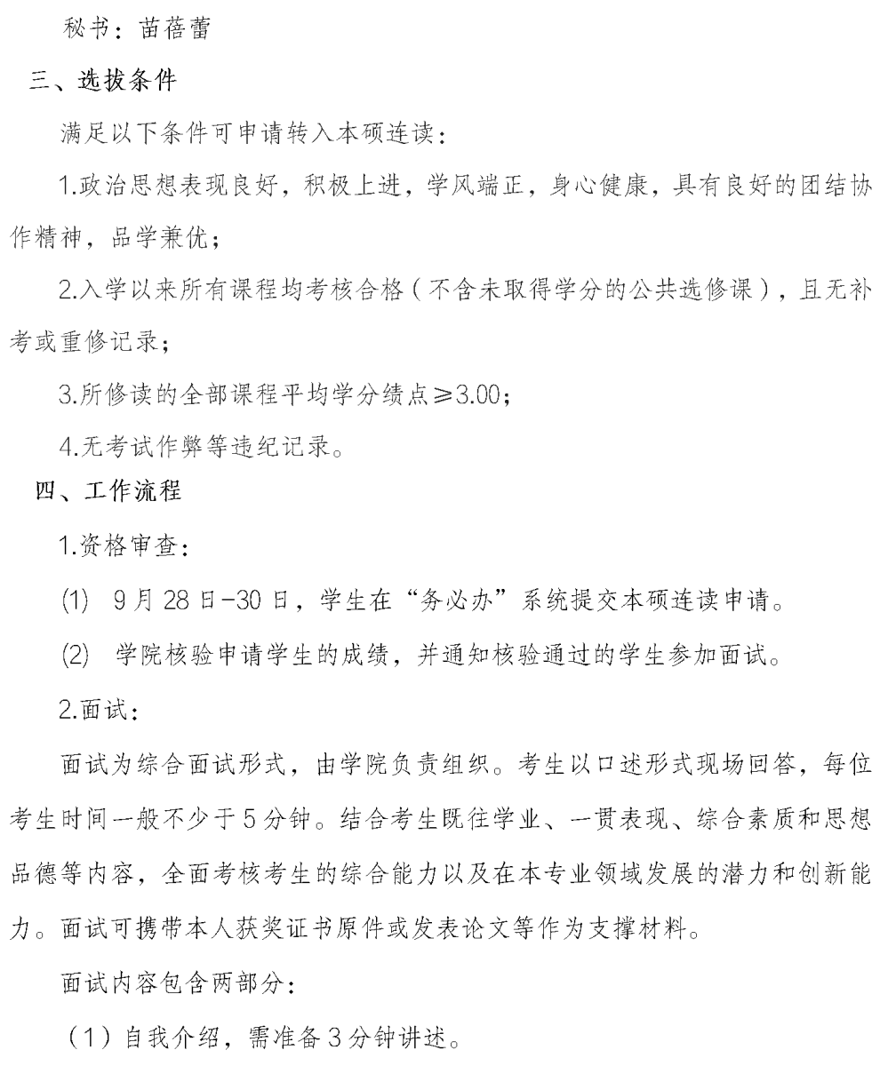 关于2021级和2022级本科生本硕连读递补选拔工作安排