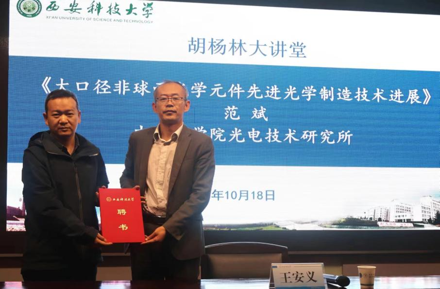 10月18日下午在临潼校区图书馆二楼报告厅,中国科学院光电技术研究所特聘研究员范斌应邀做客胡杨林大讲堂,作了题为《大口径非球面光学元件先进光学制造技术进展》的学术报告。本次报告由ok1122诸侯快讯承办,副院长黄晓俊主持,全校200余名师生聆听了报告。