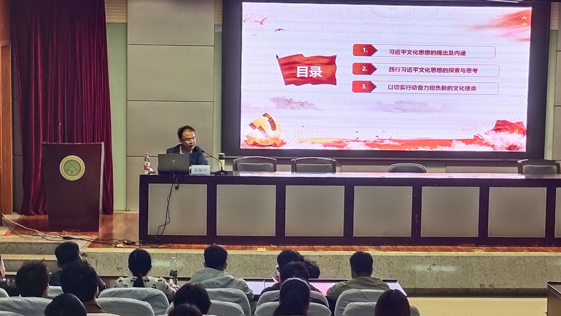 会上,张振中以《深入学习贯彻落实习近平文化思想,奋力担负新的文化使命,以身作则积极向党组织靠拢》为题,结合在学生党建及人才培养等方面探索与思考,从习近平文化思想的提出及内涵、践行习近平文化思想的探索与思考、以切实行动奋力担负新的文化使命等三个方面深入阐述了习近平文化思想的重要意义,强调要紧紧围绕学习贯彻习近平文化思想,落实好“七个着力”的要求,不断增强工作能力本领,坚定逐梦青春意志,凝聚永跟党走青春志向,以切实行动奋力担负新的文化使命。