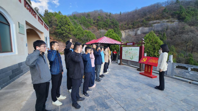 午饭后,党员们沿着当年红军的足迹,攀上壁立千仞、地势险峻的山寨,实地参观了当年设在这里的红军医院、被服厂、军械厂以及特委驻地,亲身感受中国革命政权的来之不易。大家一边参观、一边交流,无不被革命先烈艰苦卓绝、英勇顽强和不怕牺牲的革命意志深深震撼和感动。在薛家寨主峰顶,全体党员重温入党誓词,面对党旗进行庄严宣誓,誓言字字铿锵、句句千钧,镌刻着百年来中国共产党的初心和使命,昭示着共产党人对责任与担当最响亮的回答。