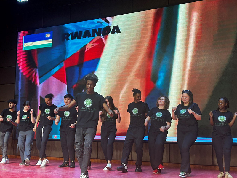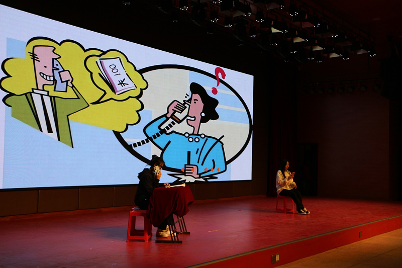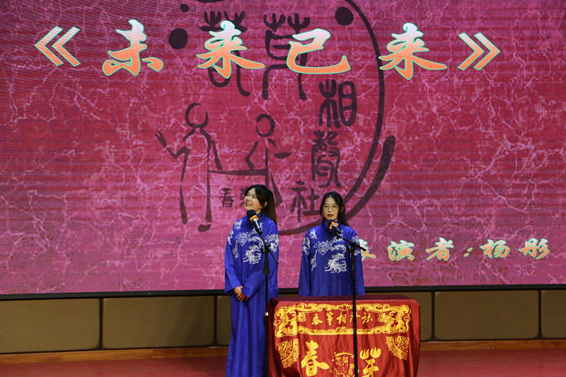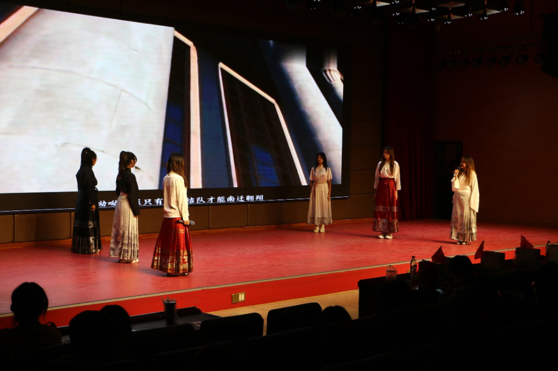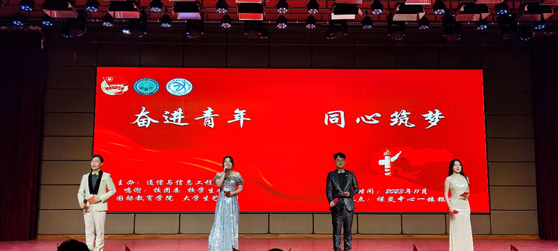 晚会伊始,舞台上绚丽的灯光照亮了整个现场,报告厅欢声笑语、掌声雷动。晚会在气势磅礴的双节棍表演中拉开序幕,大学生艺术团的《丰收锣鼓》奏响了丰收的喜悦和未来的憧憬;歌曲《空心》《云与海》展现了通信学子丰富的情感世界和细腻的情感表达;小品《诈骗》以轻松诙谐的方式提醒新生谨防电信诈骗、增强安全意识,引发了全场的欢笑和掌声;话剧《莫谣》直击青春秘密,诙谐再现了校园岁月的青涩与拼搏;相声《未来已来》在轻松愉快的氛围中带大家领略了大学生活的无限可能;一首耳熟能详的《我们都是追梦人》更是引起全场合唱,将火热气氛推至顶点,浪漫而充满活力的歌曲,寄托着通信学子们拥抱梦想、致敬历史与未来的巧思。《同心筑梦》《党旗颂》激情澎湃地表达了党同人民生死相依、休戚与共的血肉联系,展现了扬帆远航新征程的豪迈之情,赞美了祖国的万里山河和党跨越百年的伟业;随后来自国际教育学院的留学生表演了舞蹈串烧《Flash Mod》,将“文化”与“韵律”相结合,打破了区域的语言限制,共绘了“一带一路”的美好蓝图。晚会在国际教育学院、校团委、校学生会的大力支持下顺利落幕。
