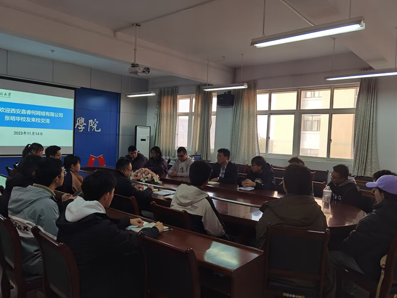 为引导学生突破毕业就业难题,实现自我就业规划的部署,1114日,我们邀请2004级校友、HW-专家HCIE、西安嘉睿柯网络科技有限公司总经理兼技术总监张明华,来我们洽谈校企合作相关事宜。学院党委副书记张振中,毕业班辅导员,毕业班学生代表、2023级学生代表参加座谈会,会议由学院党委副书记张振中主持。