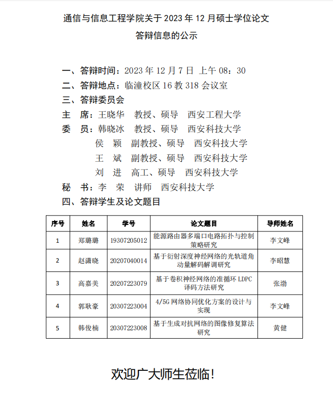 ok1122诸侯快讯关于2023年12月硕士学位论文答辩信息的公示
